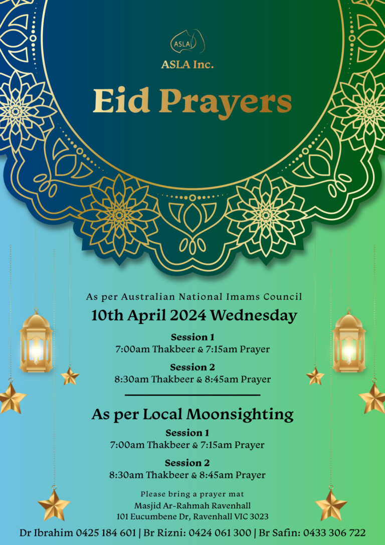 ASLA Inc. is delighted to invite the community to the Eid prayers.